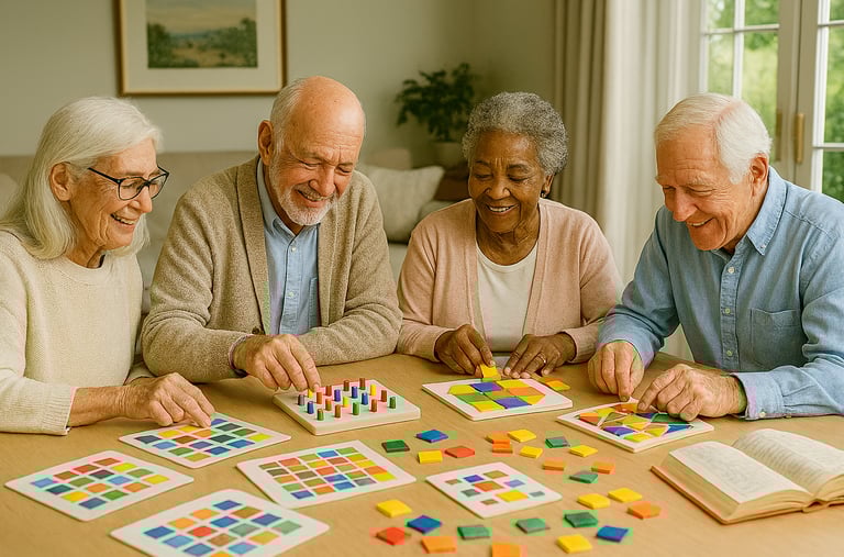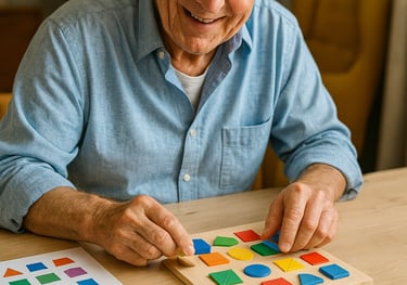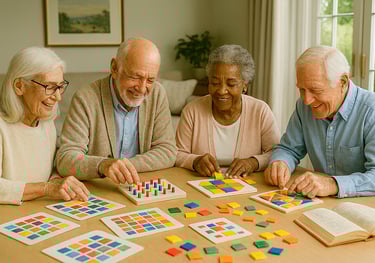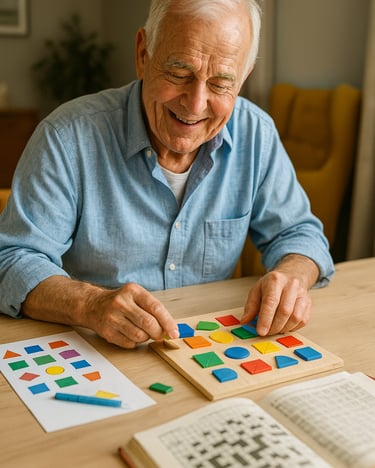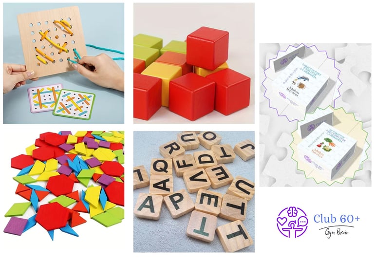 Material didáctico diseñado para ejercitar funciones cognitivas clave, reforzar habilidades mentales, ejercitar la motricidad fina y memoria; y acompañar procesos de aprendizaje en adultos mayores